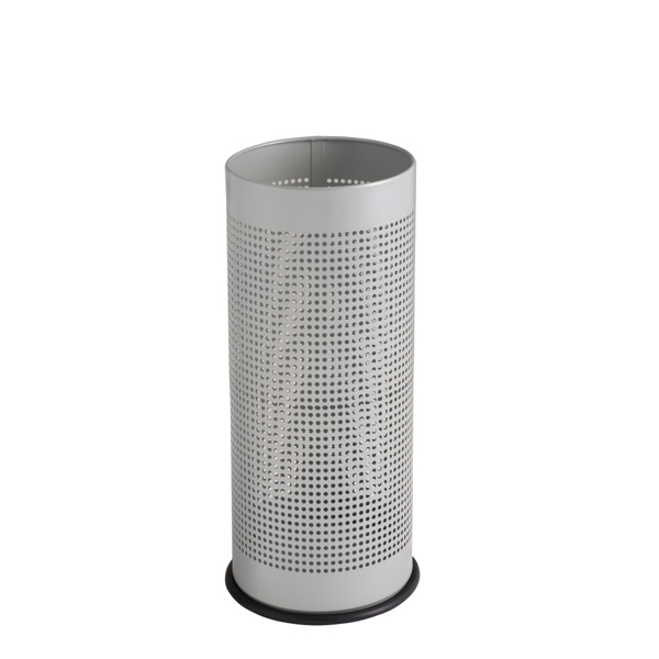In metallo verniciato grigio, con vaschetta interna in plastica per la raccolta dell'acqua, base in gomma. Lavorazione traforata.